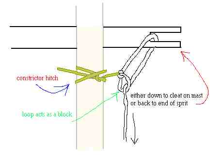 below show using a 9x12 tarp, but you could start this way. Original sail