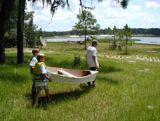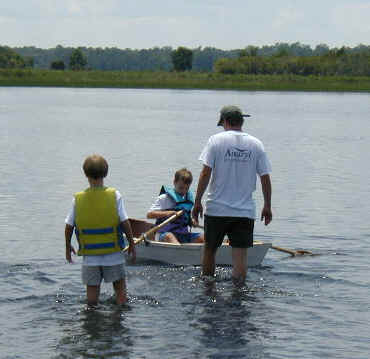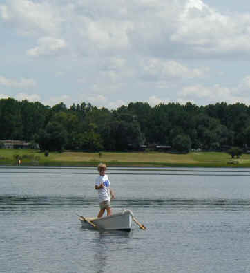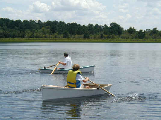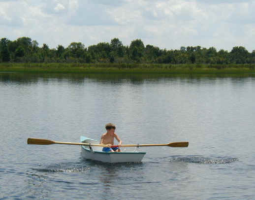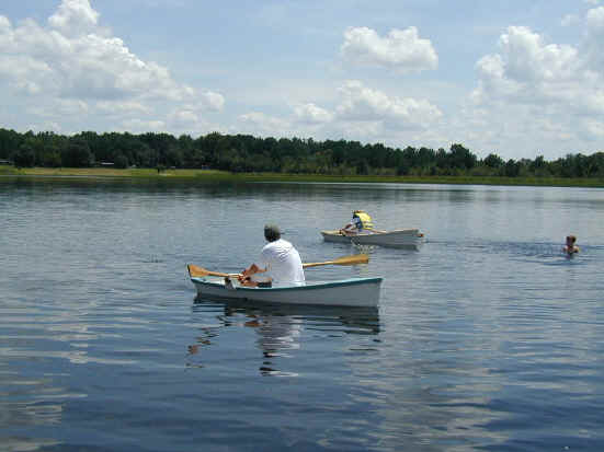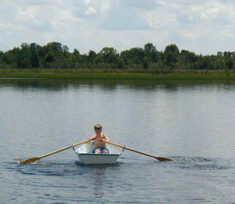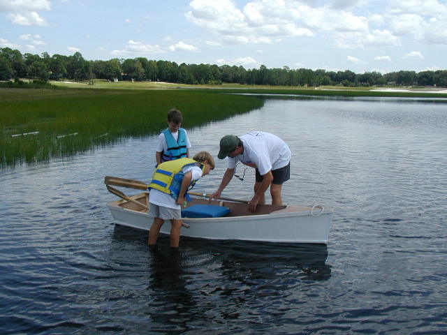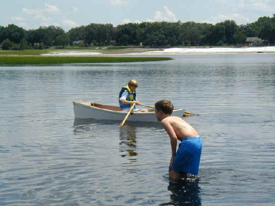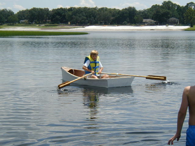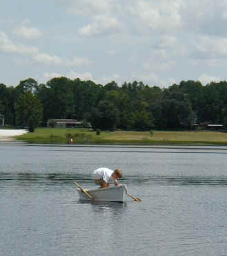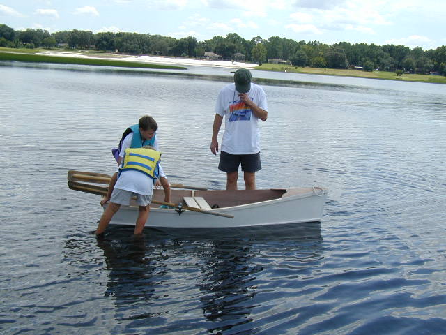 After lunch she's dry enough to slip the seat in and head for the water to check out our oar lock placement.