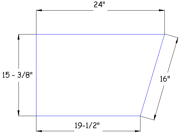 Rip the bow side strip 16 inches wide. (Remember your saw will remove a “kerf” of sawdust so allow for that to keep your sides the same width. They will be slightly narrower than 16”.) Per the drawing measure and mark 52” from opposite corners of the bow side section. Connect those marks and saw down the middle of the line.